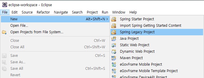 스프링 레거시 프로젝트를 실행하면 다음과 같은 화면이 뜬다.
